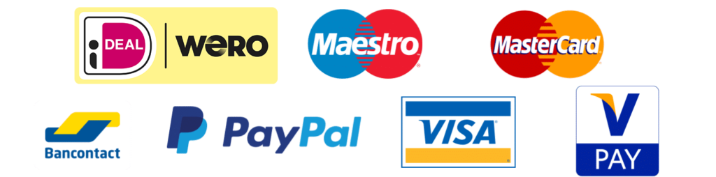 Beschikbare betaalmethoden In onze webwinkel accepteren we momenteel de volgende betaalmethoden:iDEAL/WeroMaestroMastercardBancontactPayPalVisaVPAY