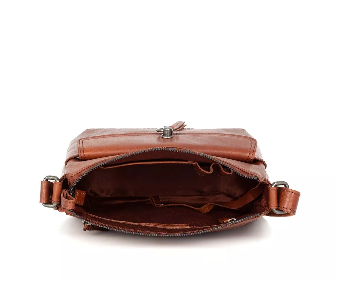 Het hoofdvak van de Jinthe brandy sluit met een stevige rits en biedt een overzichtelijke binnenruimte. Binnenin vind je een insteekvak, twee pennenlussen, een sleutelring en een apart ritsvak. Deze indeling zorgt ervoor dat je spullen niet los door de tas bewegen en dat je altijd snel vindt wat je zoekt. Zelfs bij intensief dagelijks gebruik blijft de binnenkant mooi en functioneel, wat de Jinthe tot een betrouwbare metgezel maakt.
