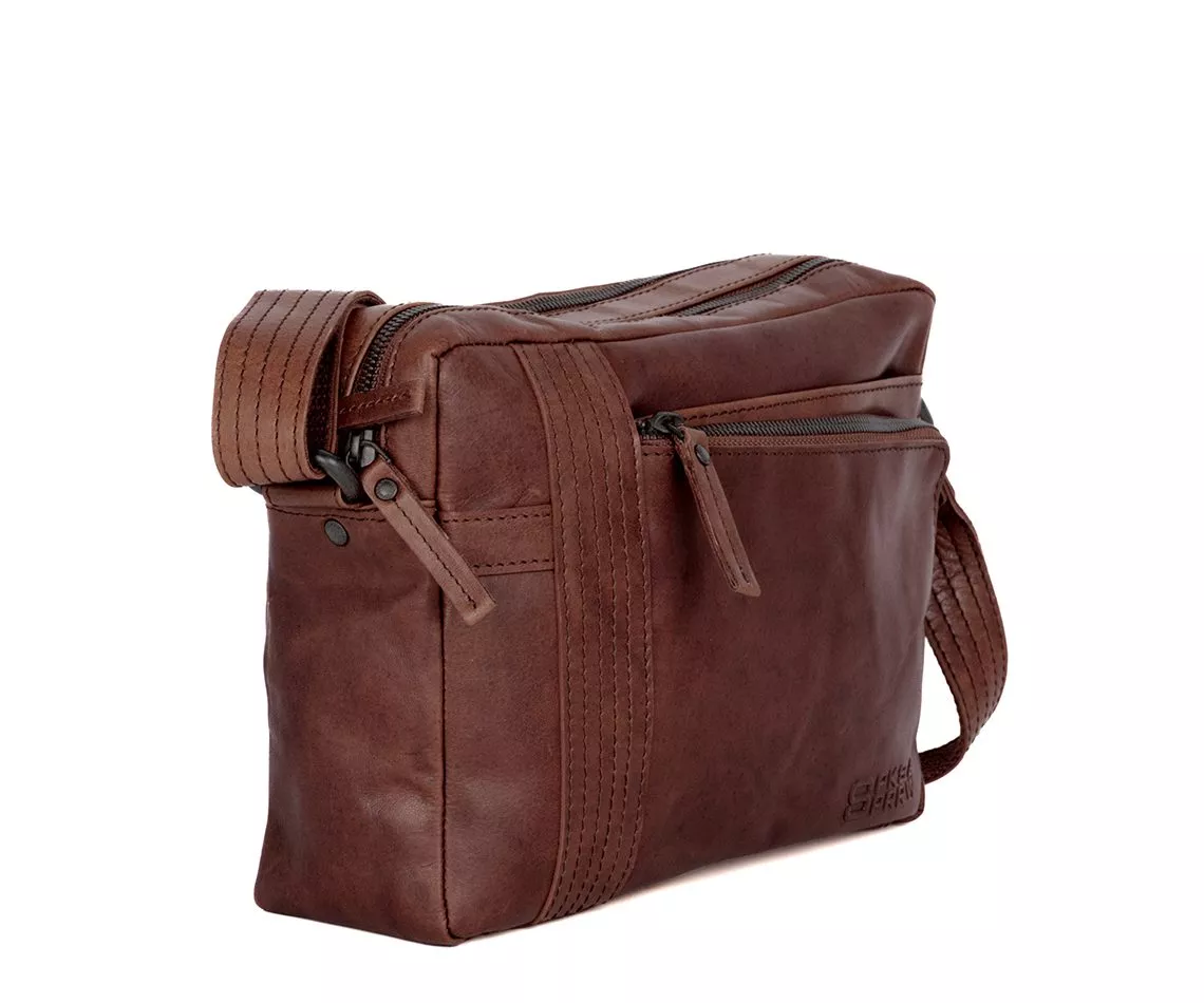 De donkerbruine Spikes & Sparrow Ayden is ontworpen voor heren die een compacte tas zoeken met een stoere, volwassen uitstraling. De warme tint van het Bronco leer benadrukt de natuurlijke nerven in het materiaal en zorgt ervoor dat iedere tas uniek is. Naarmate je de Ayden vaker gebruikt krijgt het oppervlak een prachtige patina die het karakter van de tas versterkt. Het subtiel ingeperste logo, de decoratieve stiksels en de metalen accenten zorgen voor de herkenbare uitstraling van deze serie.