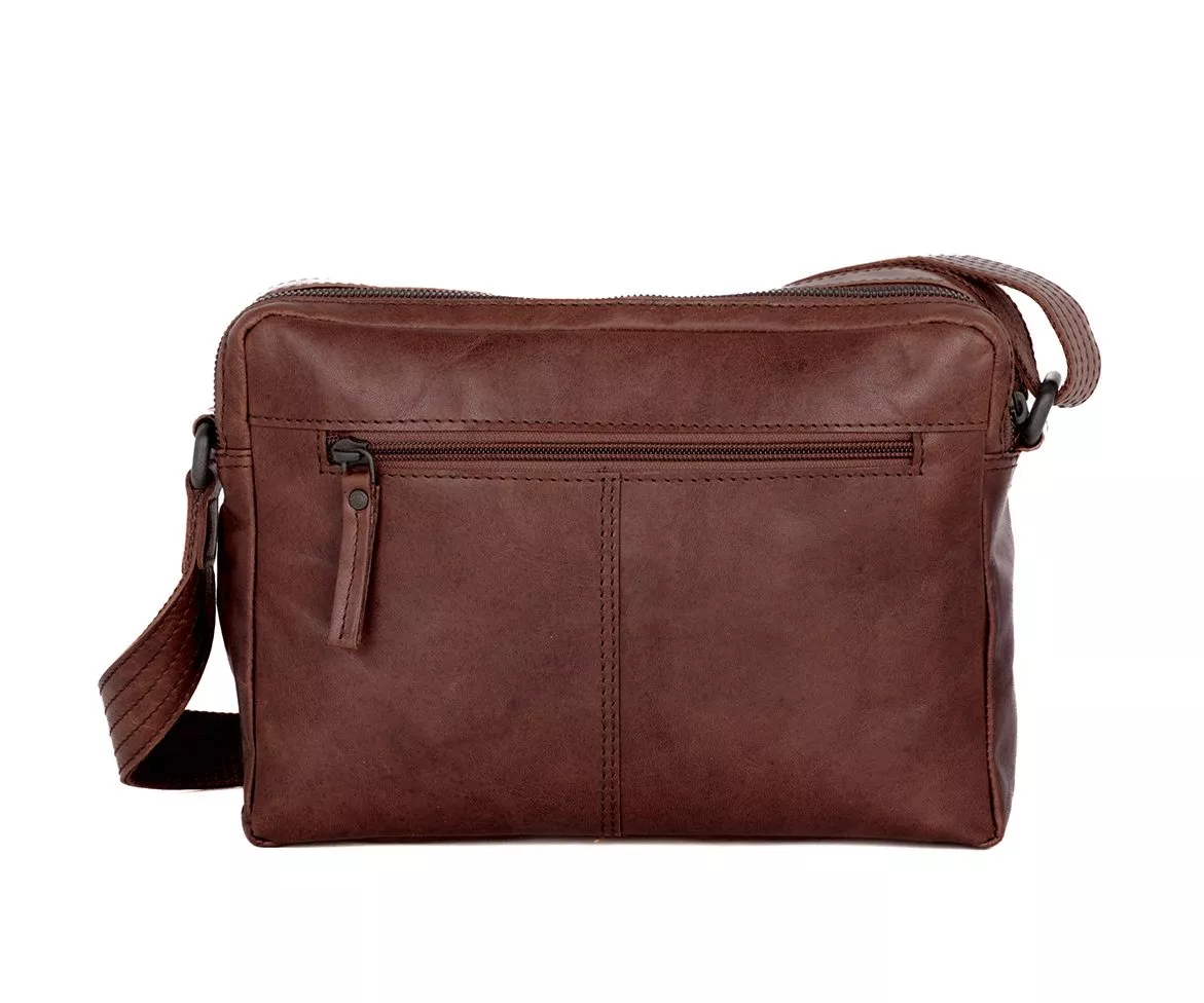De achterkant van de Ayden bevat een ritsvak dat vlak tegen het lichaam wordt gedragen. Dit is de meest veilige plek om belangrijke items te bewaren. Omdat het vak aan de achterzijde zit, is het minder toegankelijk voor anderen en daardoor ideaal tijdens reizen of drukke momenten in de stad. Samen met de voor- en binnenvakken zorgt deze achterkant ervoor dat je altijd precies weet waar je spullen zitten.