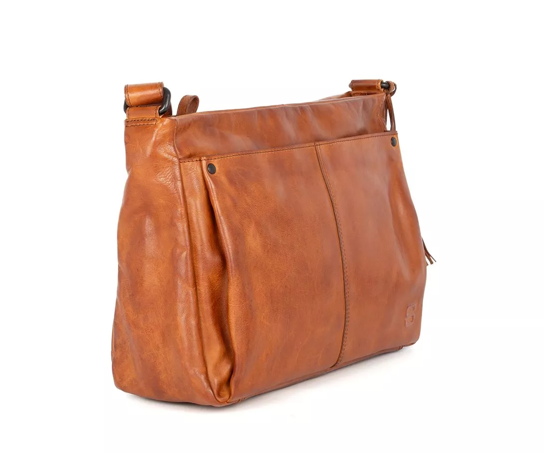Schoudertas Charmayne in brandy is het toonbeeld van casual elegantie met een stoere rand. Het warme cognackleurige leer van deze tas geeft meteen een gevoel van karakter en authenticiteit. Gemaakt van ons kenmerkende zachte Apache leer, krijgt de tas met de tijd een steeds mooiere, diepere patina. Elke tas is uniek, met een natuurlijke nerfstructuur die het ambacht en de echtheid van het materiaal onderstreept.