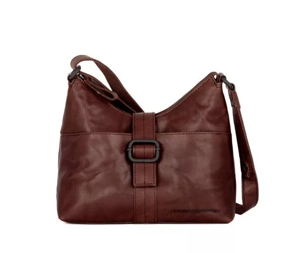 Kleur: donkerbruin Afmeting: 20 x 10 x 24,5 cm Materiaal: Bronco leer Exterieur: insteek voorvak met buckle en magneetsluiting, hoofdvak met rits, achtervak met rits Interieur: ritsvak, insteekvak, 2 pennenlusjes, sleutellusje Hengsels en banden: vaste verstelbare lange schouderband Garantie: 2 jaar