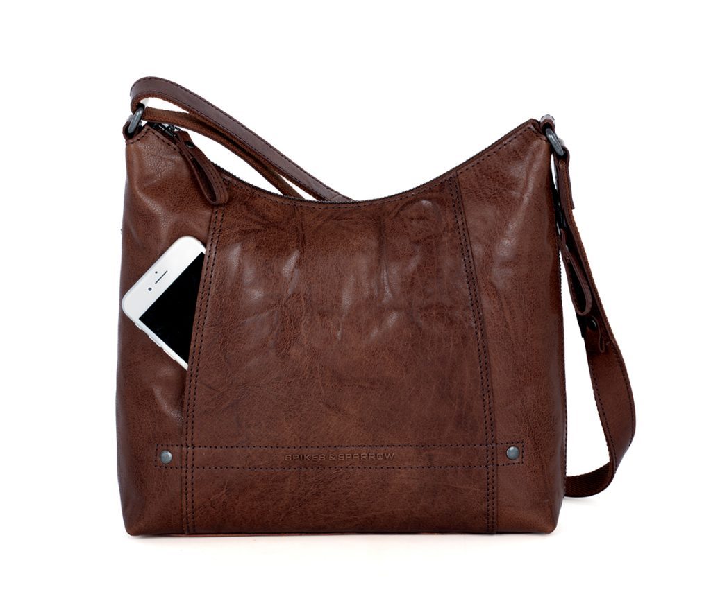 De brandy leren crossbodytas Jessyca van Spikes & Sparrow combineert elegantie en functionaliteit in één ontwerp. De tas valt op door zijn strakke vormgeving en slimme vakken. Aan de voorkant bevindt zich een onopvallend steekvak, handig voor je telefoon. Aan de zijkant zit een ritsvak, ideaal om snel toegang te hebben tot items die je vaak gebruikt, zoals je sleutels of OV-kaart. Deze praktische elementen maken de Jessyca tot een veelzijdige tas die je bij elke gelegenheid kunt dragen.