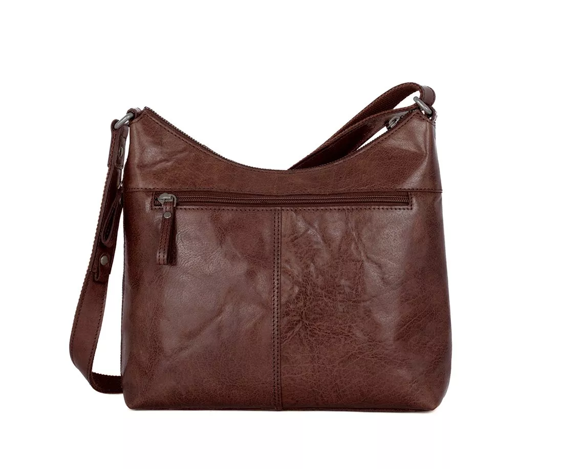 Kleur: Donkerbruin Afmeting: 28 x 9 x 26 cm Materiaal: Bronco leer Exterieur: verborgen insteek voorvak, hoofdvak met rits, zijvak met rits, achtervak met rits Interieur: ritsvak, insteekvak, 2 pennenlusjes, sleutellusje Hengsels en banden: vaste verstelbare lange schouderband Garantie: 2 jaar
