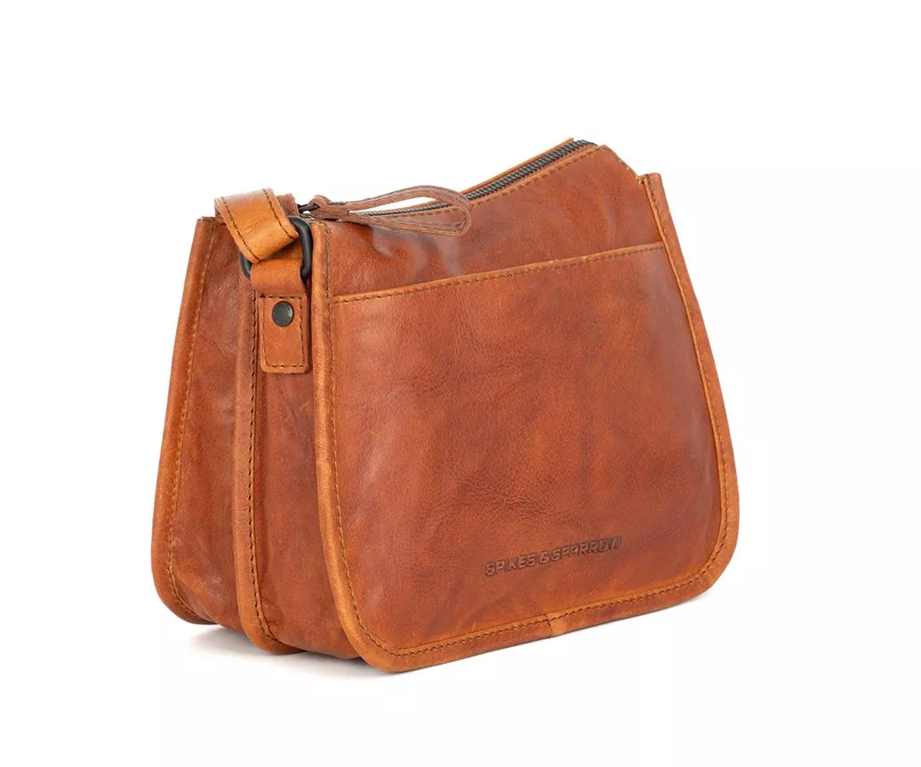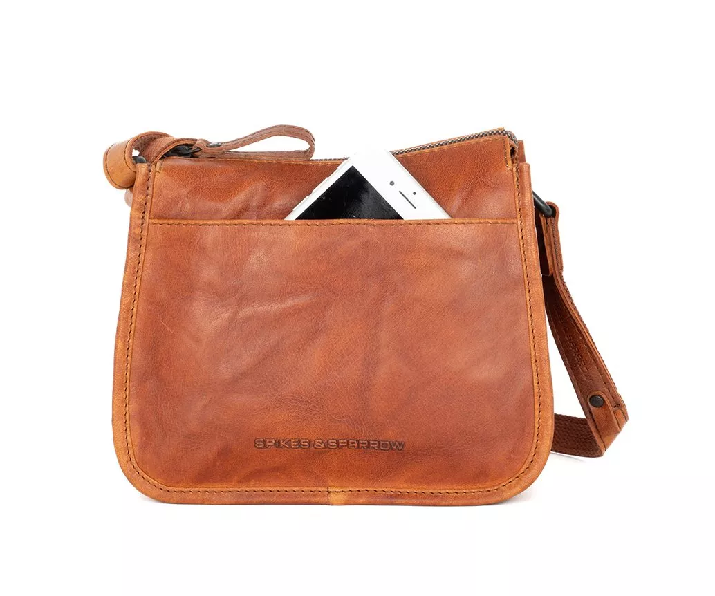 De Joy crossbody tas in de kleur brandy is een absolute favoriet onder liefhebbers van warme, natuurlijke tinten. Deze cognackleurige variant oogt fris, modern en tegelijkertijd ambachtelijk – precies wat Spikes & Sparrow zo herkenbaar maakt. Het Bronco leer in brandy is rijk aan nuance: lichte en donkere schakeringen lopen vloeiend in elkaar over, waardoor de tas een levendig en luxe voorkomen heeft. Dankzij de compacte vorm en soepele constructie is dit model ideaal voor vrouwen die een lichte maar functionele leren tas zoeken die bij ieder seizoen past.