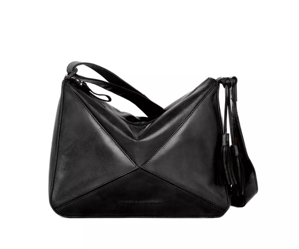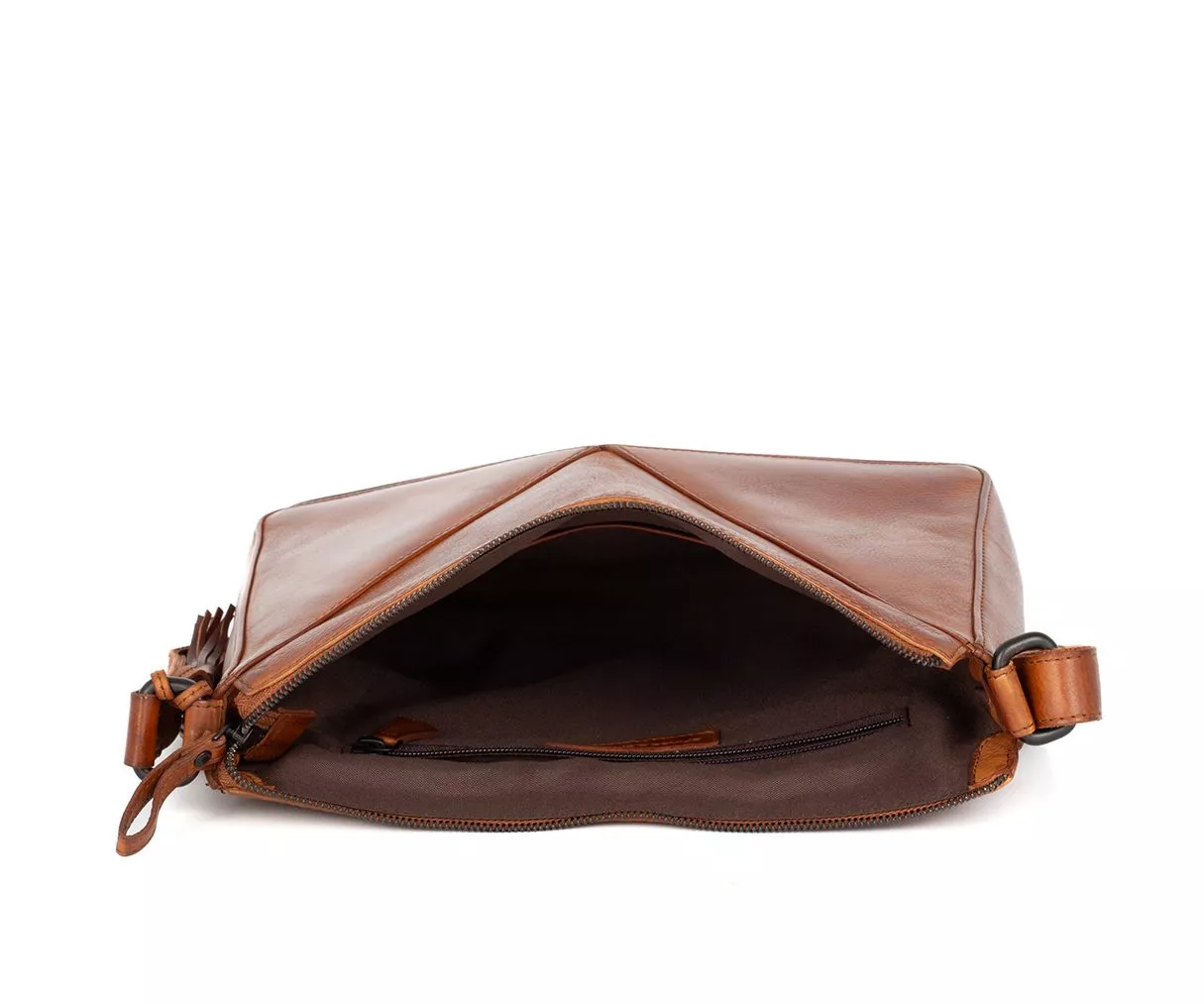 Kleur: Zwart Afmeting: 28,5 x 7 x 22,5 cm Materiaal: Apache leer Exterieur: hoofdvak met rits, decoratie kwastjes Interieur: ritsvak, insteek vak, sleutellusje Hengsels en banden: vaste/verstelbare lange schouderband Garantie: 2 jaar