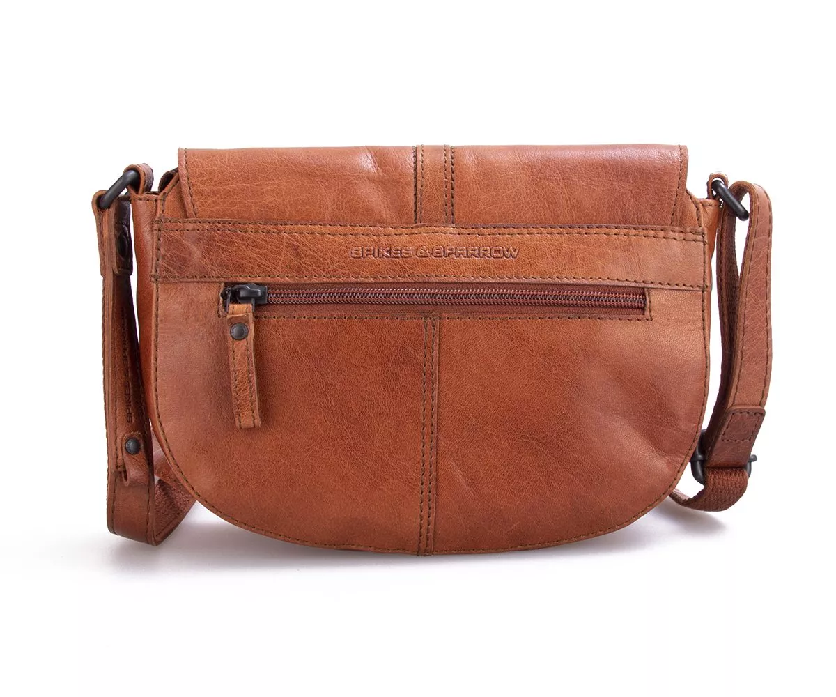 De brandy Dakota valt op door haar afgeronde vorm, verfijnde stiksels en natuurlijke kleurverloop. De metalen ring onder de klep brengt een speels detail in het ontwerp, zonder dat het drukt op de elegante uitstraling. De subtiel aangebrachte Spikes & Sparrow branding is herkenbaar, maar nooit dominant. Dit is een tas voor vrouwen die waarde hechten aan kwaliteit en authenticiteit, zonder te willen inleveren op stijl.