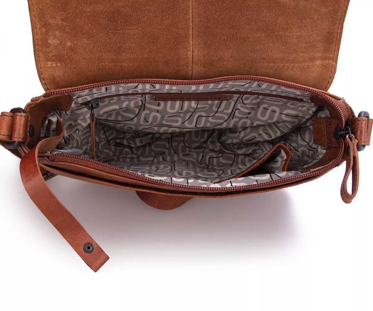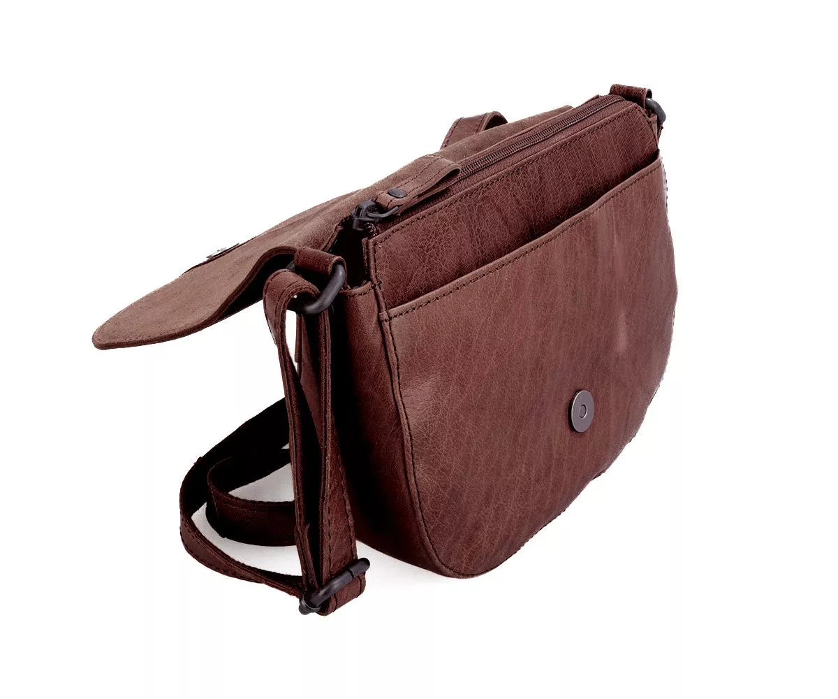 De Dakota in donkerbruin biedt een georganiseerde indeling die perfect aansluit op een actief dagelijks leven. Onder de magnetische klep bevindt zich een insteekvak voor items waar je snel bij moet, zoals je sleutels of telefoon. Het hoofdcompartiment sluit volledig met een rits, zodat je essentials veilig opgeborgen blijven, zelfs tijdens drukke momenten. Binnenin vind je een ritsvak, een insteekvak en een sleutellusje om alles netjes geordend te houden. Achterop zit een extra ritsvak, ideaal voor documenten of voorwerpen die dicht tegen je lichaam moeten blijven.