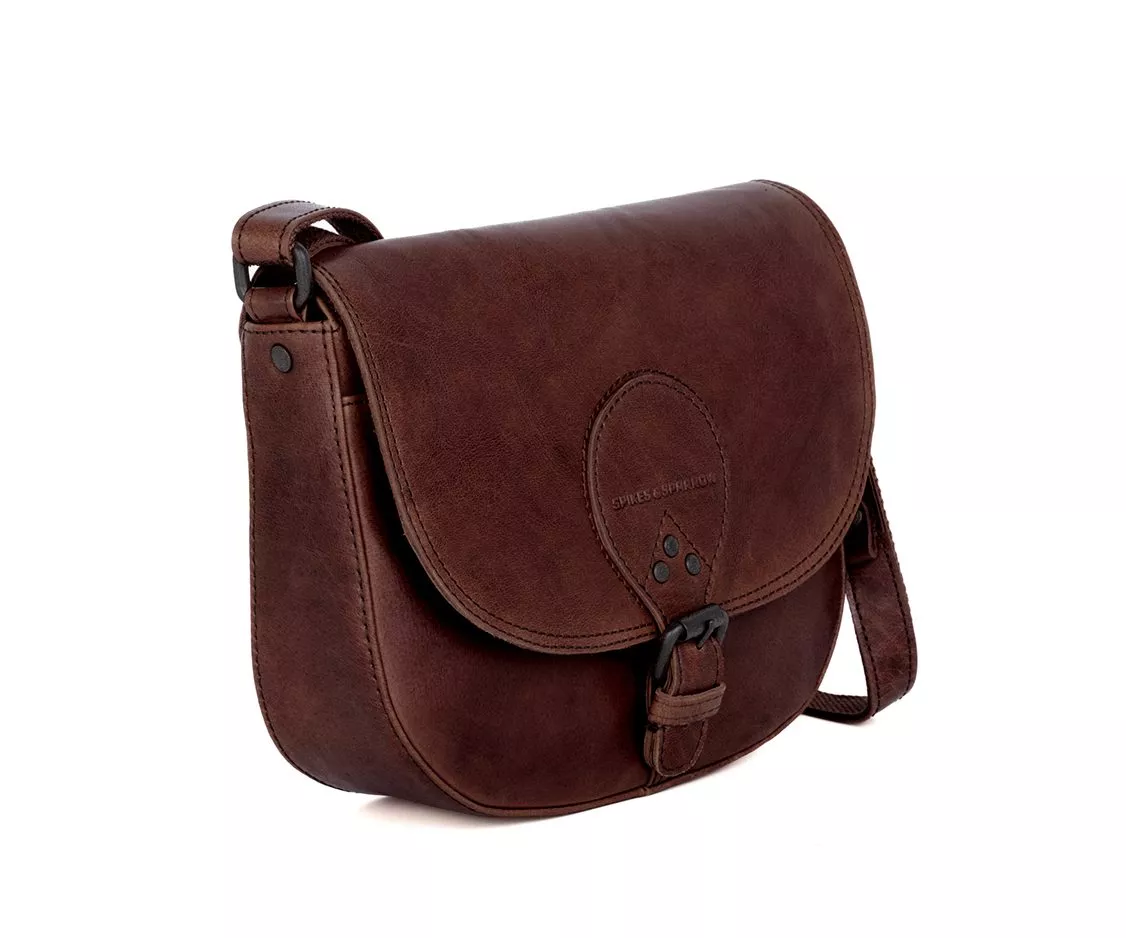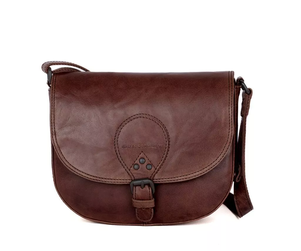 Spikes & Sparrow Leren Crossbodytas met klep – Nicolina – Donkerbruin