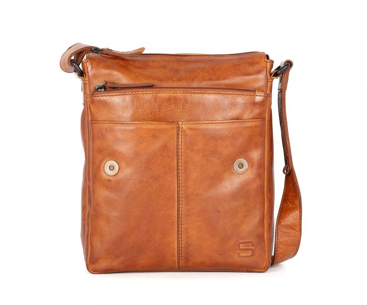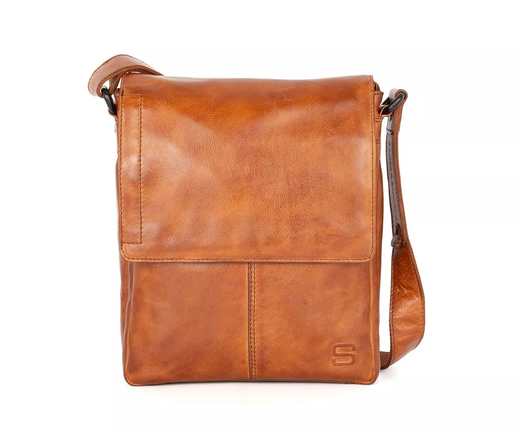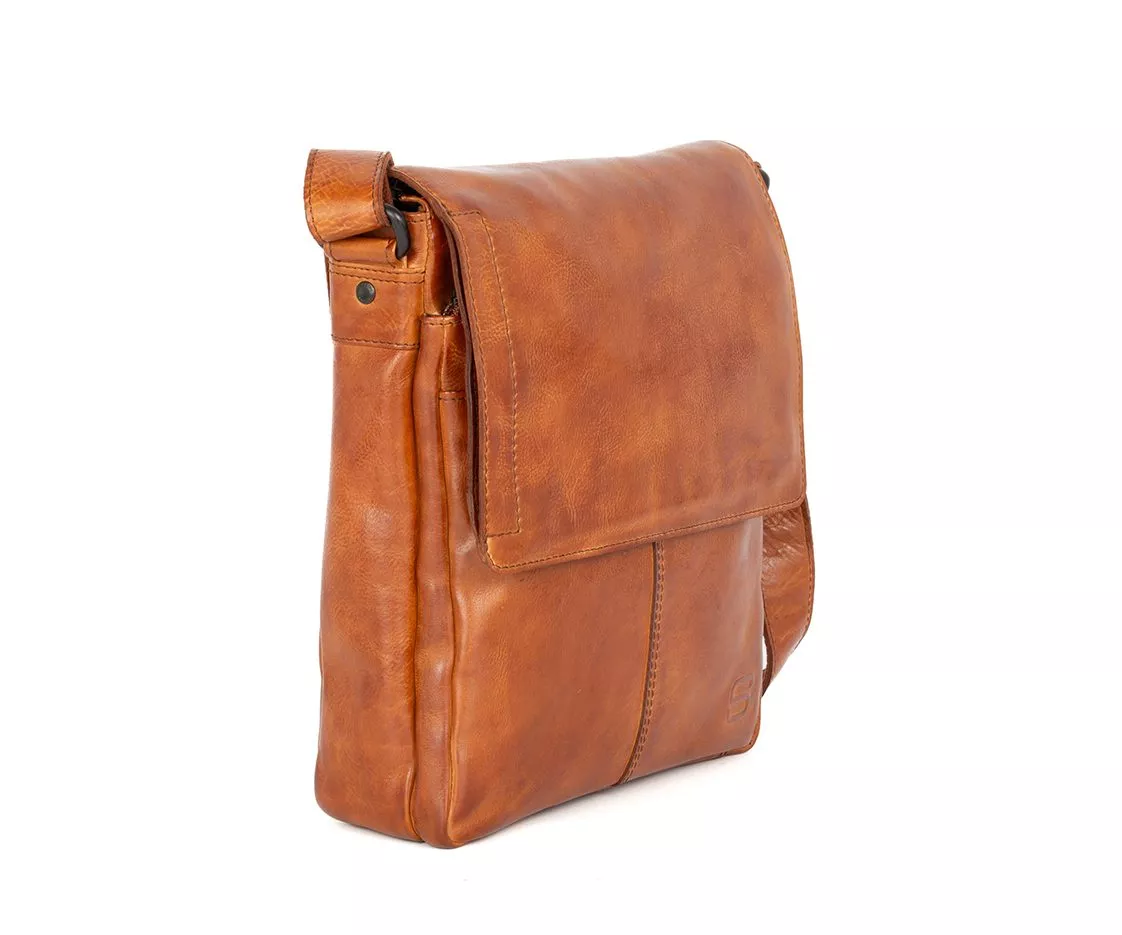 De brandy-uitvoering van Stan heeft een stijlvolle uitstraling zonder opdringerig te zijn. Het ‘S’ logo van Spikes & Sparrow is subtiel in het leer verwerkt aan de rechter onderzijde van de flap – een kenmerkend accent dat vakmanschap en kwaliteit uitstraalt. Een fijne extra touch is de verstelbare leren schouderband, die comfortabel over je schouder of crossbody gedragen kan worden. Zo blijft je tas altijd goed op zijn plaats, ook tijdens het fietsen of lopen.