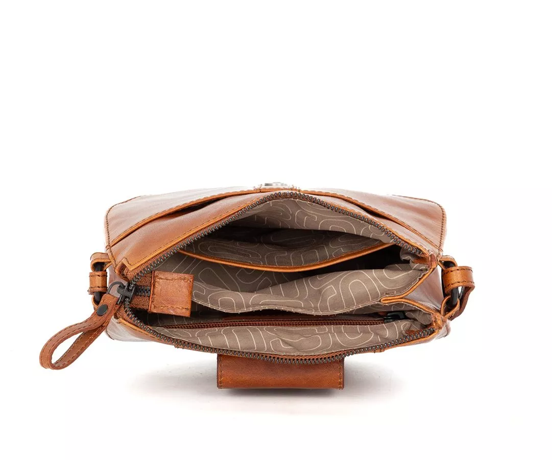 Brandy leren mini crossbody tas “Krystina” – Stoer, speels en stijlvol