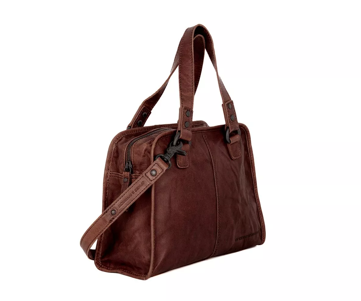 De donkerbruine Danine is uitgerust met twee stevige, comfortabel in de hand liggende handvaten, waardoor de tas een elegante en klassieke uitstraling krijgt. Daarnaast wordt de tas geleverd met een afneembare en verstelbare lange band, gemaakt van hetzelfde Bronco leer. Hierdoor kun je de tas ook gemakkelijk crossbody of over de schouder dragen. Deze veelzijdigheid maakt de Danine perfect voor dagelijks gebruik, werkafspraken, winkeldagen of weekenduitjes. De tas voelt licht en prettig aan, ongeacht hoe je haar draagt.