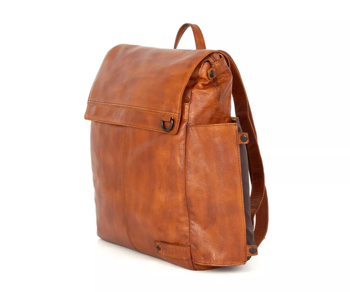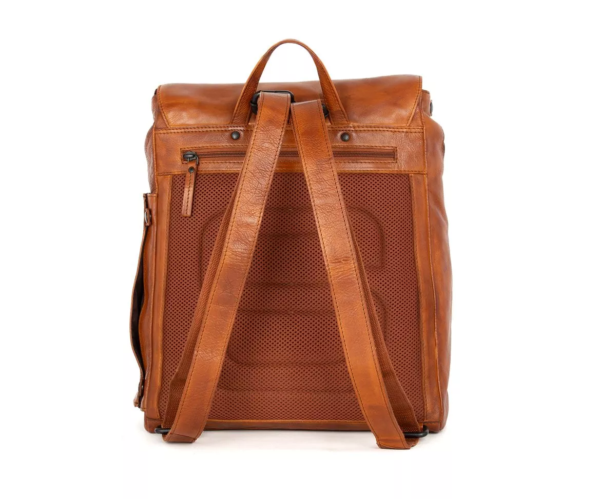 De Spikes & Sparrow laptop rugzak Ted in brandy is een leren rugzak voor heren die houden van karakter, functionaliteit en een warme, stoere uitstraling. De diepe brandy kleur benadrukt de natuurlijke nuances van het leer en geeft de tas een authentieke vintage look. Met zijn afmetingen van 32 x 12 x 38 cm biedt deze rugzak volop ruimte voor dagelijks gebruik en is hij perfect geschikt voor het veilig meenemen van een 15.6 inch laptop.
