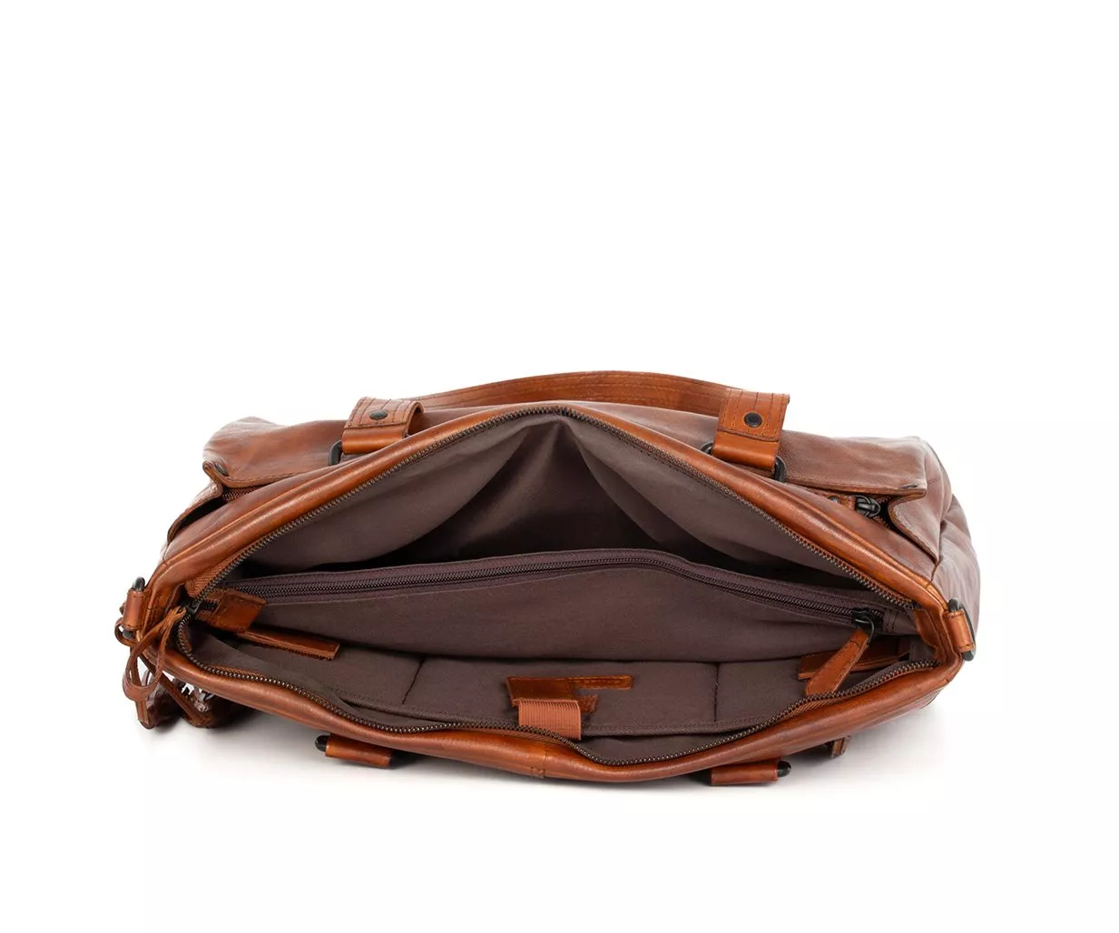 De leren laptoptas Chrissey in brandy is het toonbeeld van karakter en vakmanschap. De warme cognactint benadrukt het rijke, natuurlijke karakter van het Apache leer, dat zorgvuldig is geselecteerd op kwaliteit en duurzaamheid. Door de subtiele glans en de levendige nerfstructuur krijgt deze tas een luxe uitstraling met een stoer randje. Een perfecte keuze voor de stijlvolle professional die oog heeft voor detail en kiest voor een tas die na verloop van tijd alleen maar mooier wordt.
