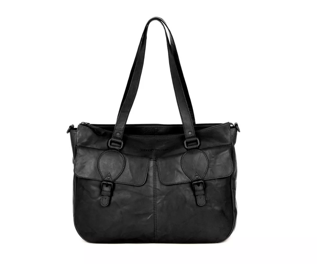 De zwarte leren laptop schoudertas Fee van Spikes & Sparrow is ontworpen voor wie functionaliteit wil combineren met een onderscheidende stijl. Deze tas is perfect geschikt voor een 15,6 inch laptop en biedt daarnaast volop ruimte voor documenten, opladers en persoonlijke spullen. De twee voorvakken met western geïnspireerde flap en gespsluiting geven de tas een unieke look die zich duidelijk onderscheidt van standaard laptoptassen. Een accessoire dat professionaliteit uitstraalt, maar altijd met een stoer randje.