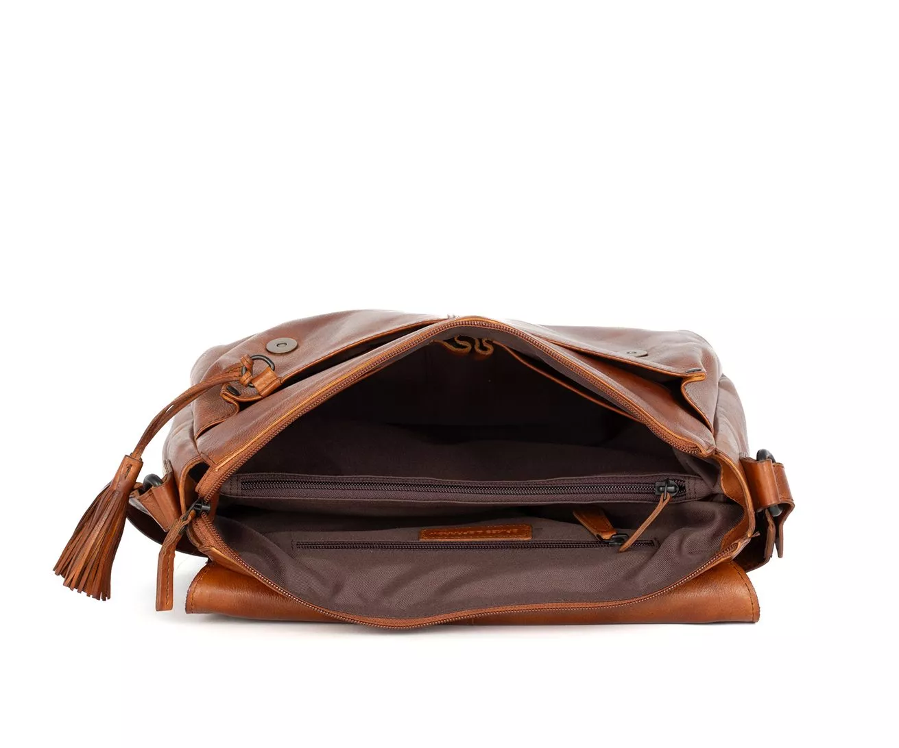 Zoek je een werktas die praktisch én stijlvol is, met net dat beetje extra karakter? Ontmoet Lorin in de kleur donkerbruin: een elegante, maar stoere crossbodytas van soepel Apache-leer. Ontworpen met oog voor detail, afgewerkt met vrouwelijke accenten zoals sierlijke kwastjes en voorzien van een functionele indeling. Of je nu onderweg bent naar je werk, een afspraak hebt of gewoon je dagelijkse essentials in stijl wilt meenemen – Lorin is jouw betrouwbare metgezel.