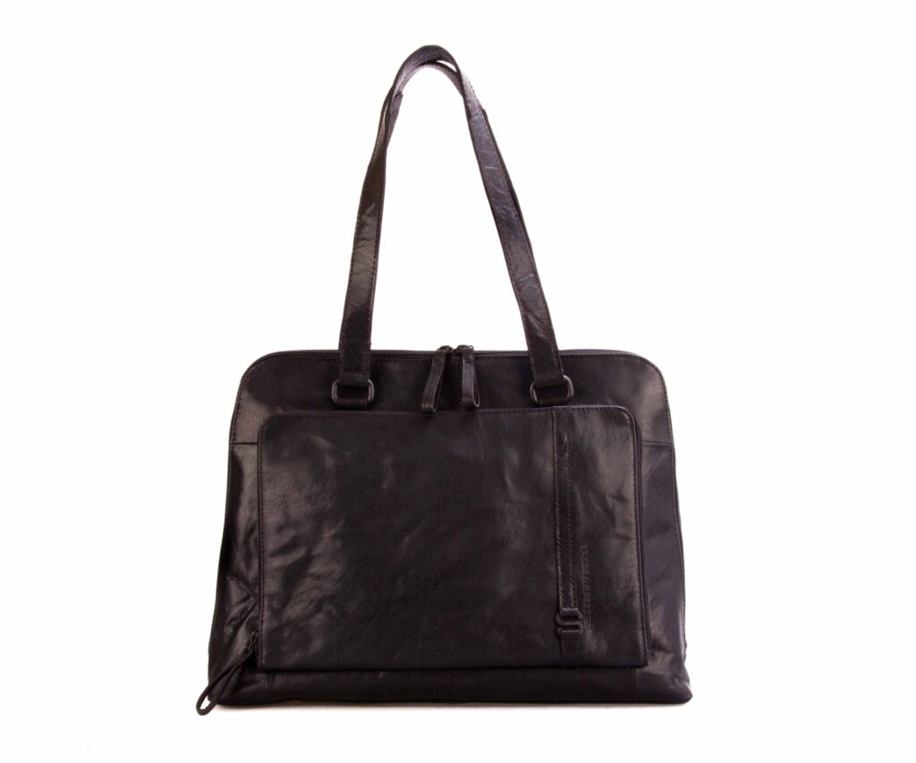 De tas heeft een groot ritsvak aan de voorkant, ideaal voor documenten, opladers of je telefoon. Het hoofdvak sluit af met een stevige metalen rits en biedt volop ruimte voor laptop en werkbenodigdheden. Aan de achterkant vind je niet alleen een ritsvak om je waardevolle spullen dichtbij je lichaam te houden, maar ook een geรฏntegreerde trolleyband. Deze band maakt de Shiloh een uitstekende reisgenoot, omdat je de tas eenvoudig op een koffer bevestigt zonder dat je gewicht hoeft te dragen.