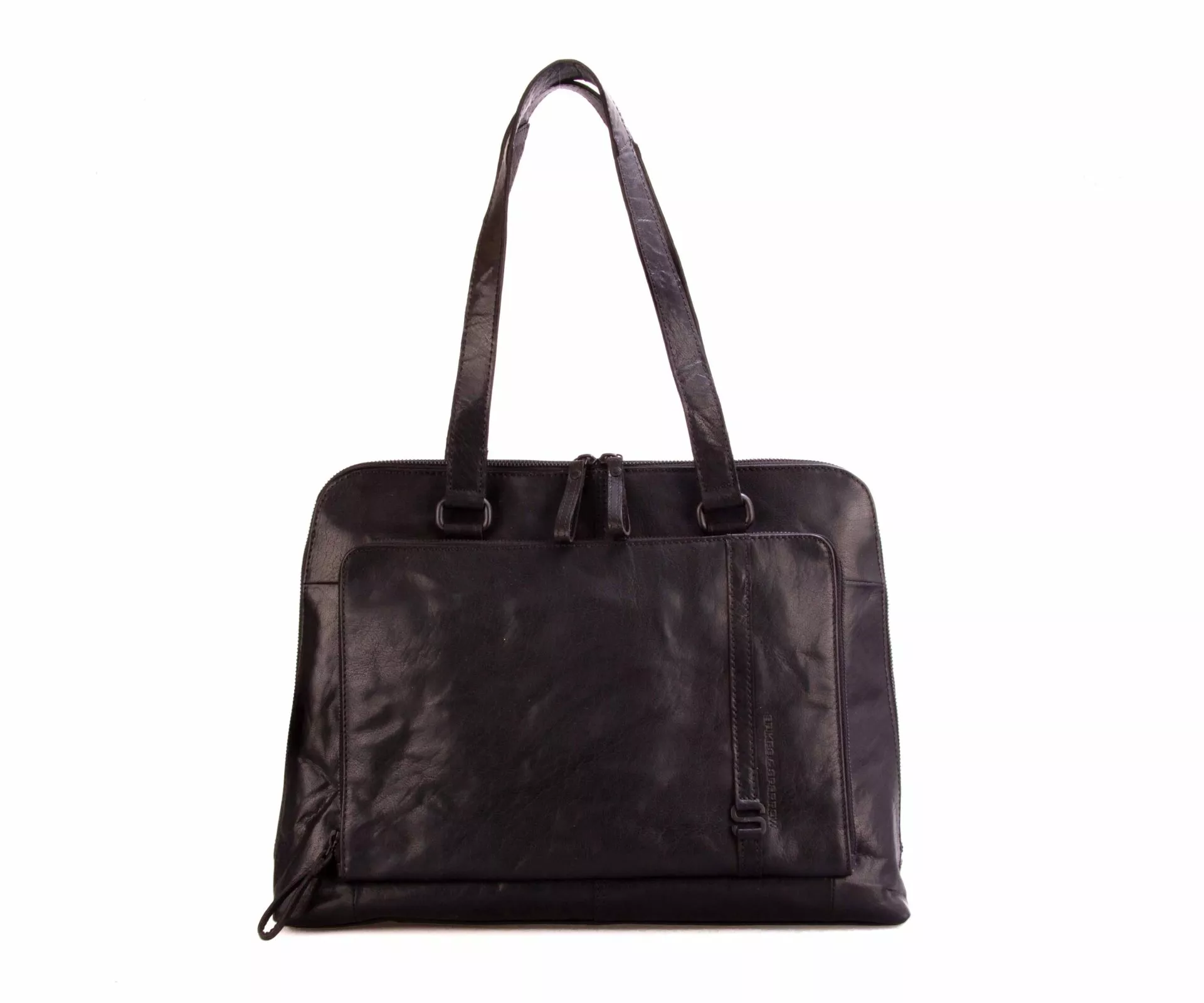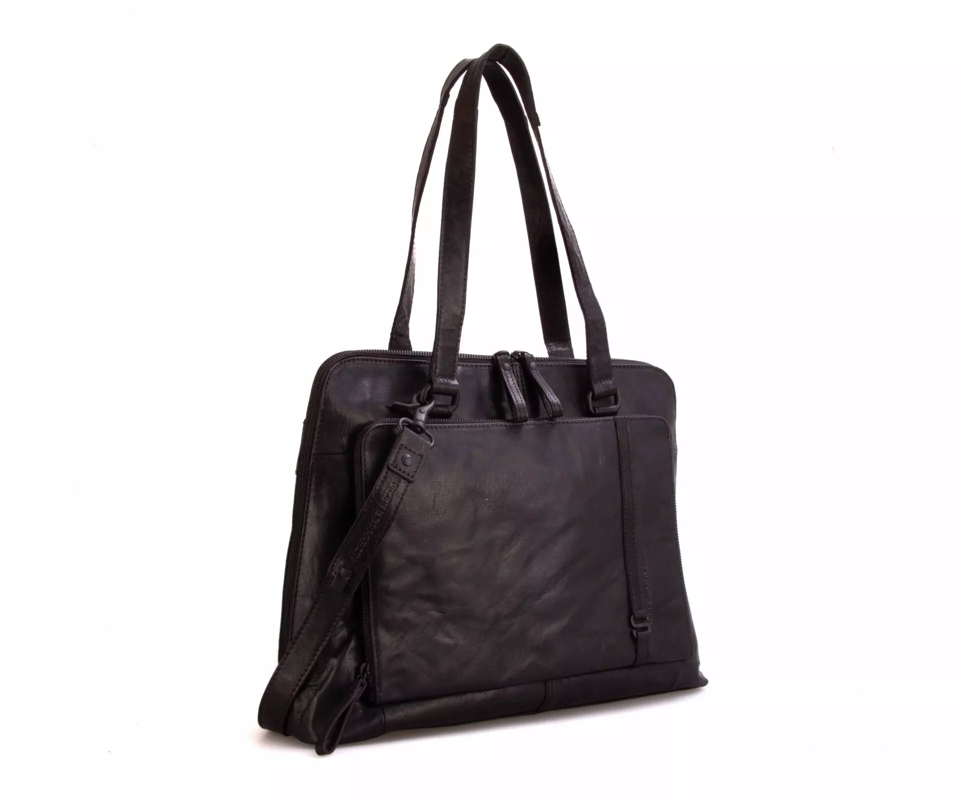De zwarte Spikes & Sparrow laptop schoudertas Shiloh is ontworpen voor vrouwen die hoge eisen stellen aan hun werkaccessoires: stijlvol, robuust, professioneel รฉn praktisch. Deze ruime leren laptoptas biedt alles wat je nodig hebt om je 15-inch laptop veilig te vervoeren, gecombineerd met een tijdloze uitstraling die past bij elke zakelijke outfit. Of je nu dagelijks naar kantoor gaat, hybride werkt of vaak onderweg bent, de Shiloh biedt de perfecte mix van elegantie en functionaliteit.