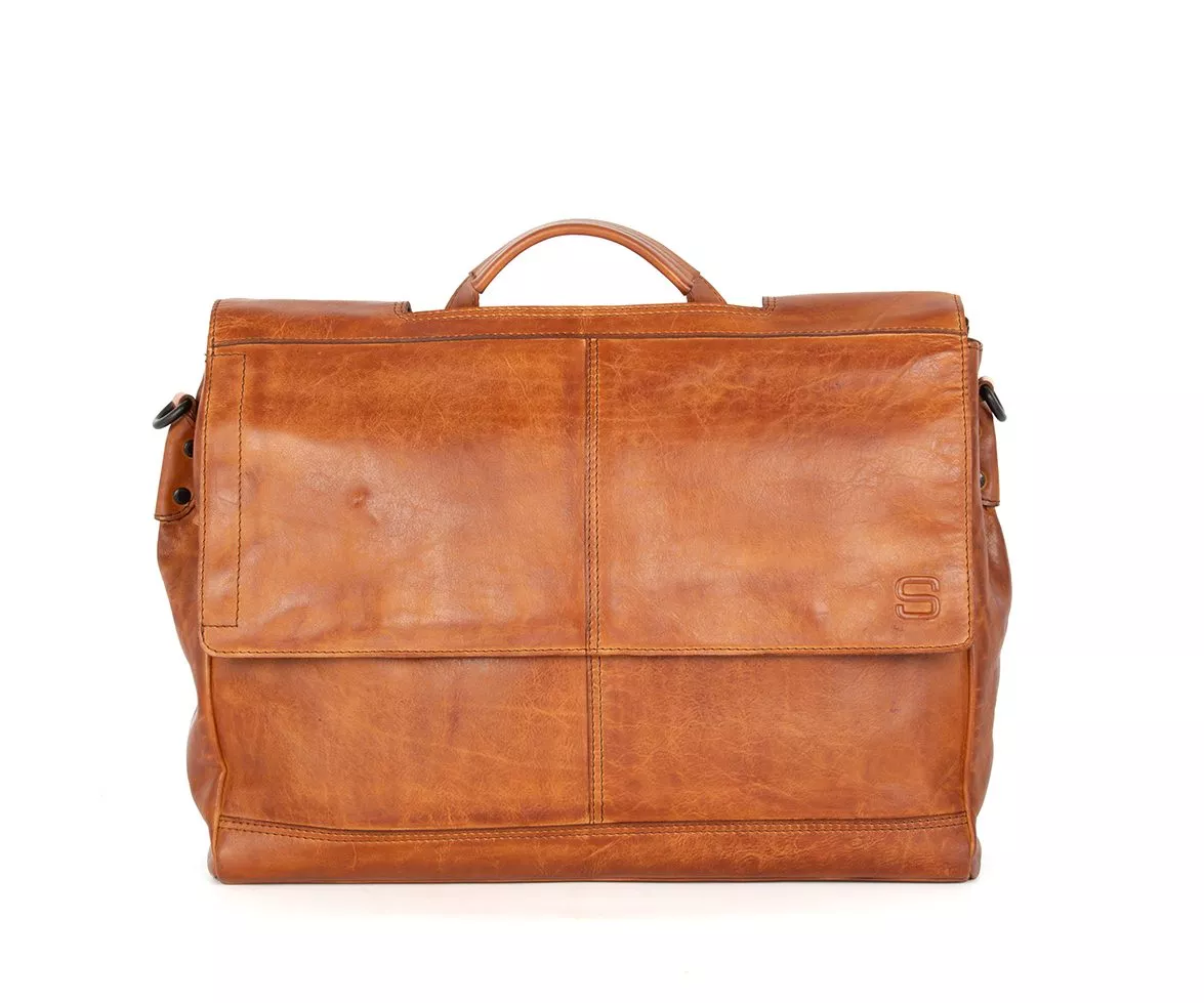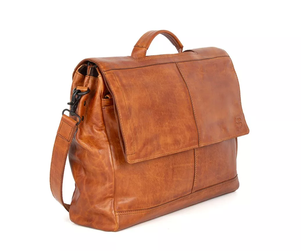 Voor wie zoekt naar een combinatie van functionaliteit, stijl en karakter, is de leren laptoptas Benzo in de kleur brandy een uitstekende keuze. Deze warme cognactint versterkt het natuurlijke karakter van het soepele Apache leer waaruit de tas is vervaardigd. Door de rijke, amberkleurige afwerking krijgt de tas een tijdloze charme die perfect past bij zowel een casual als zakelijke look.