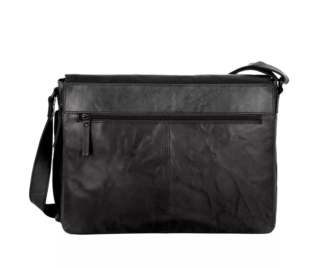 De zwarte leren laptoptas Ronn van Spikes & Sparrow is ontworpen voor wie houdt van een strakke, minimalistische look met praktische functionaliteit. Het eerste wat opvalt, is de royale flap die het hoofdvak afsluit en subtiel voorzien is van het Spikes & Sparrow-logo embossed. Deze flap geeft de tas niet alleen een moderne en stoere uitstraling, maar beschermt ook de inhoud tegen regen en vuil. Of je nu onderweg bent naar je werk, een meeting of een dagje buiten de deur werkt: de Ronn combineert stijl met betrouwbaarheid.