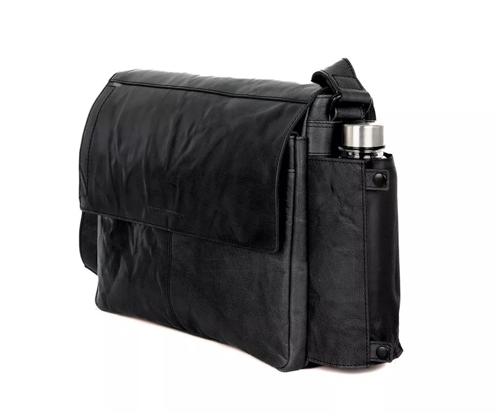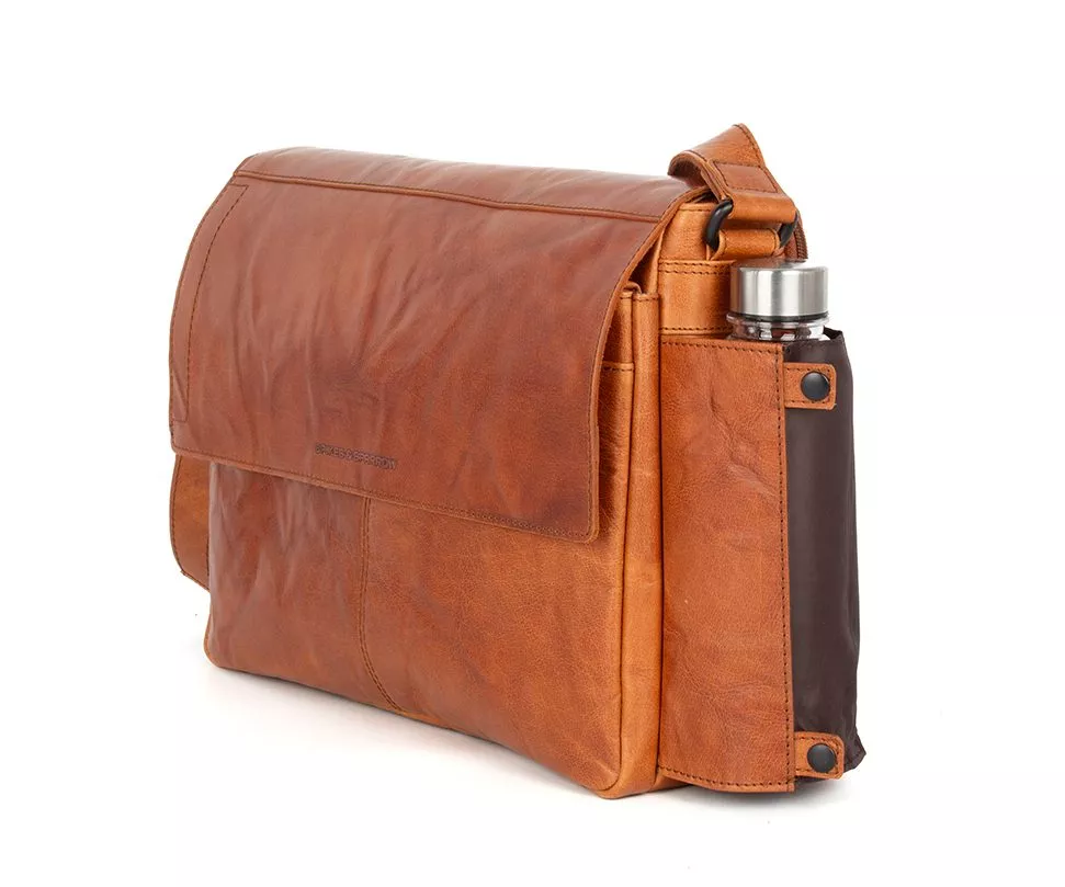 Laptoptas Ronn combineert een stoere uitstraling met een praktische indeling, waardoor hij ideaal is voor dagelijks gebruik en werk. De tas is ontworpen met een royale flap die het hoofdvak afsluit en voorzien is van het subtiele Spikes & Sparrow-logo embossed. Deze flap beschermt de inhoud van de geeft een strakke, minimalistische look. Binnenin vind je een speciaal vak voor je 15.6 inch laptop, dat extra bescherming biedt tegen stoten en krassen. Daarnaast zijn er meerdere compartimenten en vakken om je documenten, oplader en andere essentials netjes georganiseerd te houden. Aan de buitenkant van de tas bevindt zich bovendien een handige flessenhouder die sluit met stevige drukknopen. Zo heb je altijd een waterfles binnen handbereik, zonder dat je de tas hoeft te openen, en blijft je drinkfles netjes op zijn plaats.
