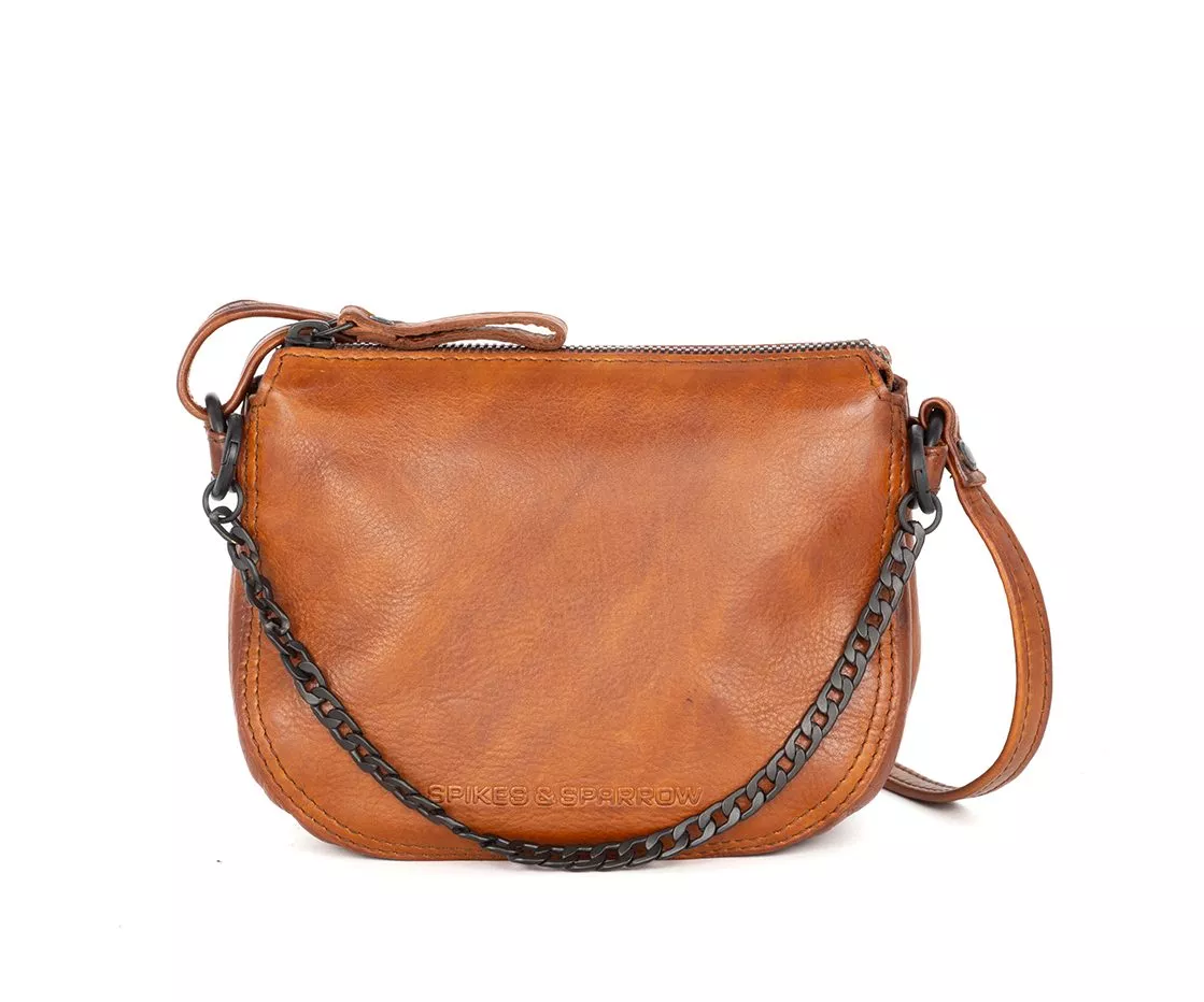 Spikes & Sparrow Leren Mini Crossbodytas – Delaine – Brandy