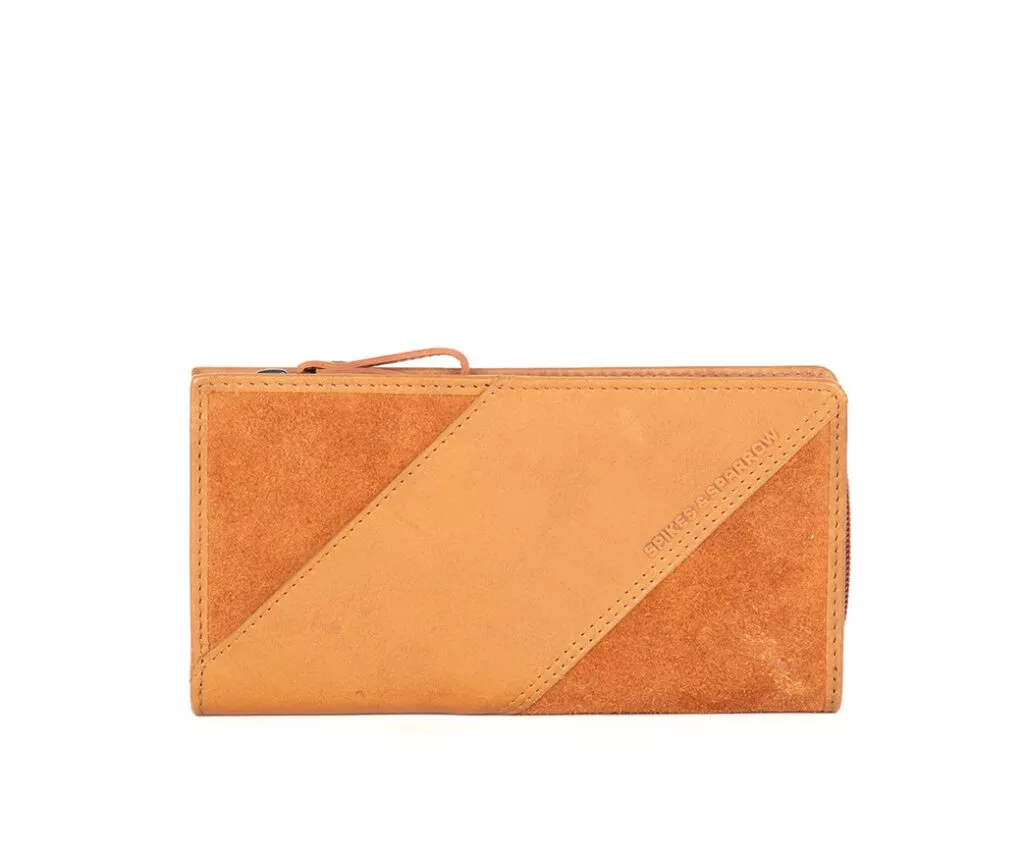 Deze camel leren RFID-portemonnee ‘Afra’ combineert stoer Apache leer met zacht suède en heeft een herkenbaar design met diagonale lijnen. Deze stijlvolle portemonnee is niet alleen mooi, maar ook praktisch ingedeeld. Binnenin vind je een middenverdeler met rits voor muntgeld en maar liefst 12 creditcardvakjes. Dankzij de RFID-bescherming zijn je pasjes veilig tegen skimmen. Een elegante en functionele leren portemonnee die perfect is voor dagelijks gebruik.