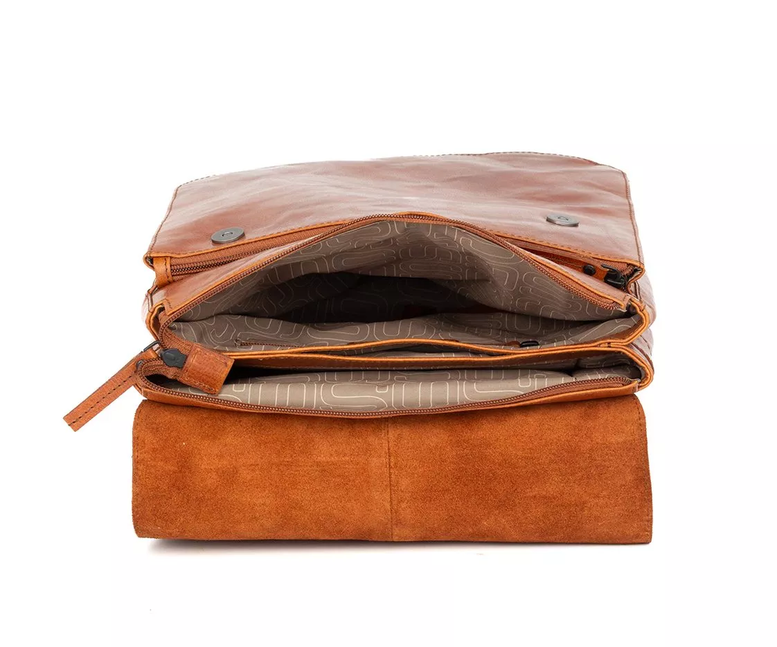 Ook de buitenkant is ontworpen met oog voor detail. Aan de voorzijde zit een verborgen ritsvak dat je alleen ontdekt als je weet waar je moet kijken – ideaal voor items die je snel bij de hand wilt hebben. De flap met magneetsluiting biedt extra bescherming voor het hoofdvak, terwijl het achtervak met rits je de mogelijkheid geeft waardevolle spullen dicht bij je lichaam te dragen.