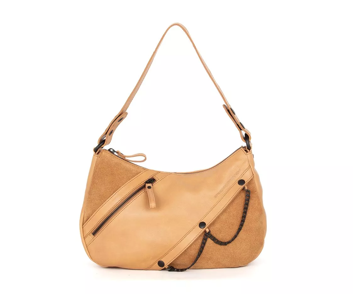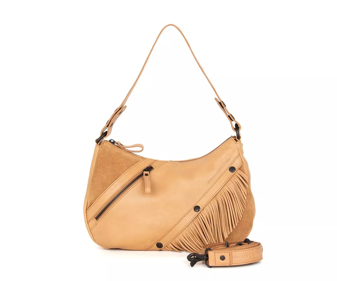 De Spikes & Sparrow schoudertas Jadeline in de kleur camel is een stijlvolle en veelzijdige tas voor dames die houden van een lichte, natuurlijke uitstraling met karakter. De lichte cameltint geeft de tas een verfijnde en tijdloze look. In combinatie met het zachte suède en het stoere Apache leer ontstaat een harmonieus geheel waarin elegantie en robuustheid elkaar versterken. Met haar afmetingen van 32 x 8,5 x 20 cm biedt de Jadeline voldoende ruimte voor dagelijks gebruik, zonder haar vrouwelijke vorm te verliezen.