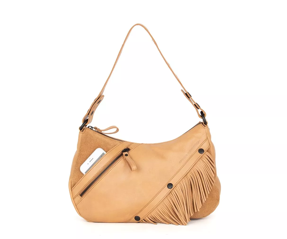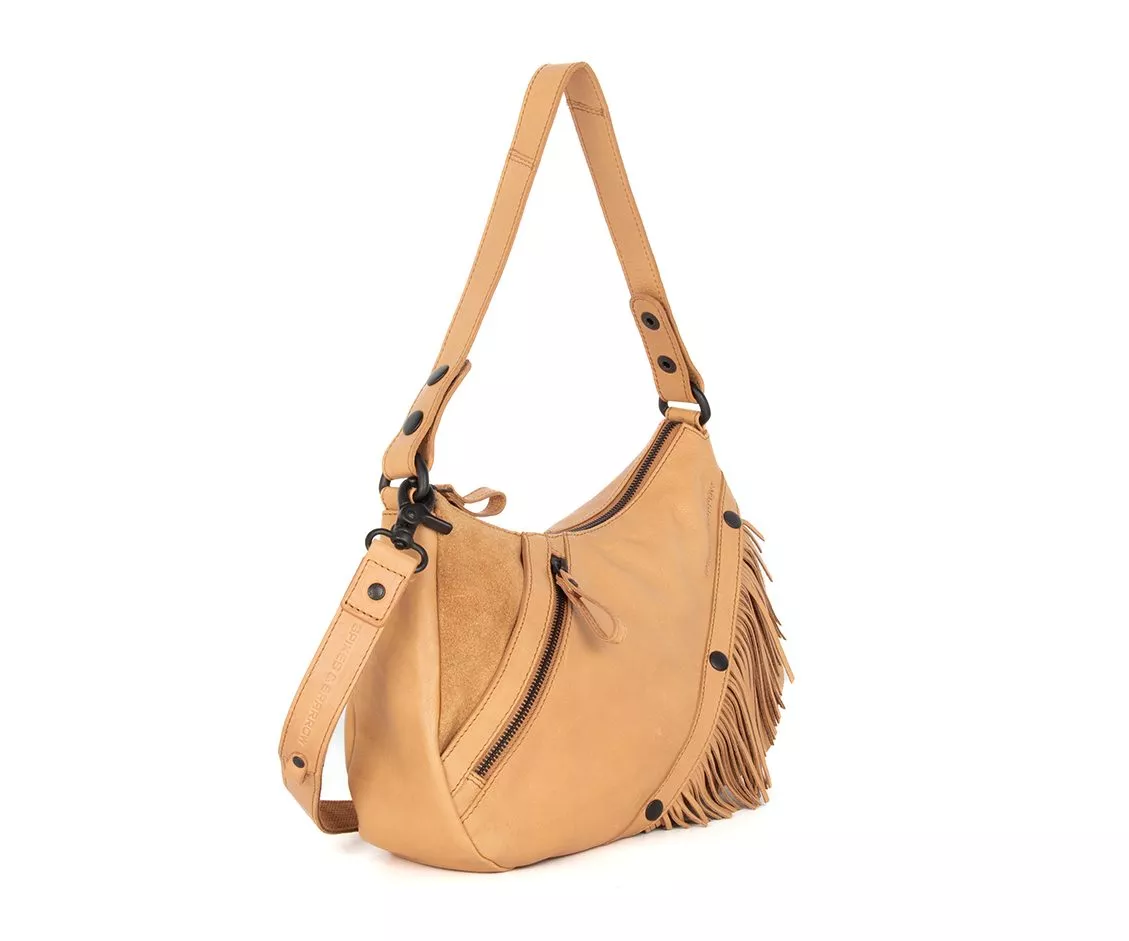 Wat deze uitvoering van de Jadeline extra bijzonder maakt, is haar flexibiliteit in uitstraling. Bij de variant van Apache leer gecombineerd met suède kun je eenvoudig drie verschillende looks creëren. Met behulp van drukknopen voeg je het kettinkje of de leren franjes toe voor een speelse, bohemien uitstraling. Ga je liever voor een strakker en rustiger model, dan verwijder je deze details in een handomdraai. Zo stem je de tas moeiteloos af op je outfit, gelegenheid of persoonlijke stijl, zonder van tas te hoeven wisselen.