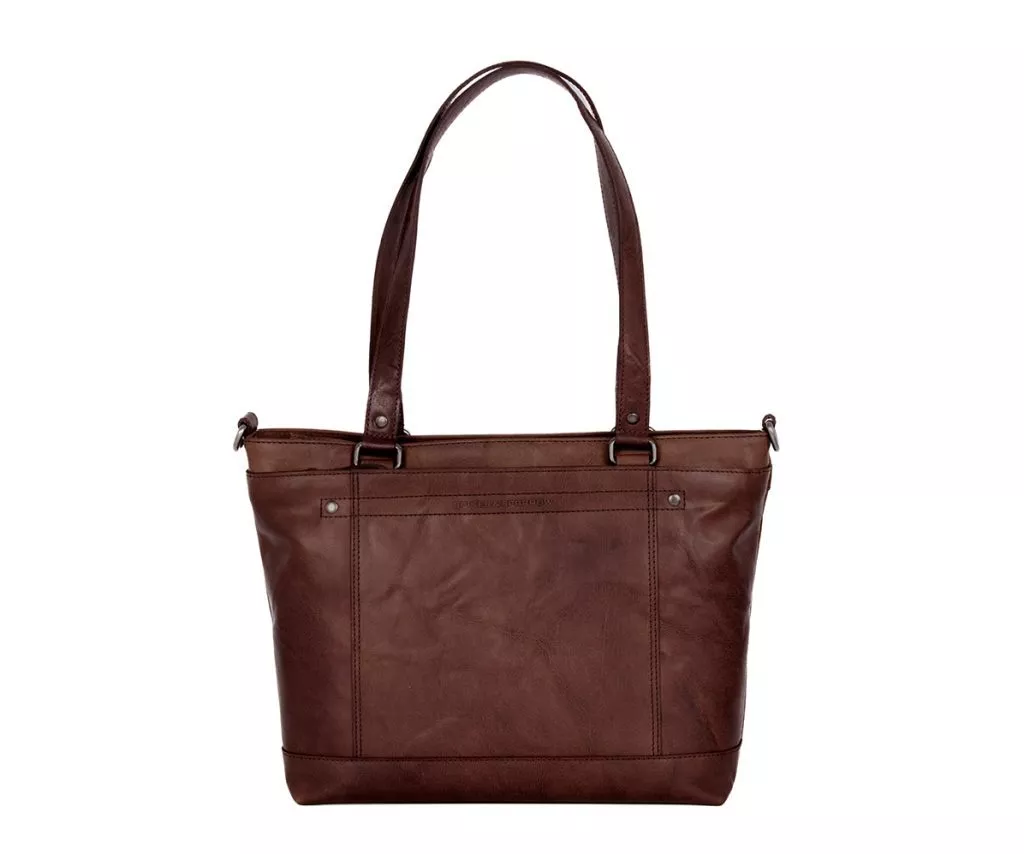 Een opvallend detail aan Rachelle zijn de lange, gestikte schouderbanden. Deze zorgen voor een comfortabele draagervaring, zelfs als de tas volledig gevuld is. Aan de zijkanten zijn stevige metalen ringen bevestigd waaraan een afneembare, verstelbare schouderriem kan worden bevestigd, zodat je de tas ook crossbody kunt dragen. Dit maakt de tas bijzonder veelzijdig en praktisch voor onderweg. Het design van de tas wordt verder gekenmerkt door een minimalistische voorzijde met een subtiel embossed Spikes & Sparrow-logo en sierstiksels die het vakmanschap benadrukken. De tas sluit bovenaan met een stevige ritssluiting, zodat je spullen veilig opgeborgen zijn. Binnenin biedt Rachelle volop ruimte voor je dagelijkse benodigdheden zoals een 12 inch laptop, documenten en persoonlijke items. De tas is afgewerkt met stoere metalen studs op strategische plekken.