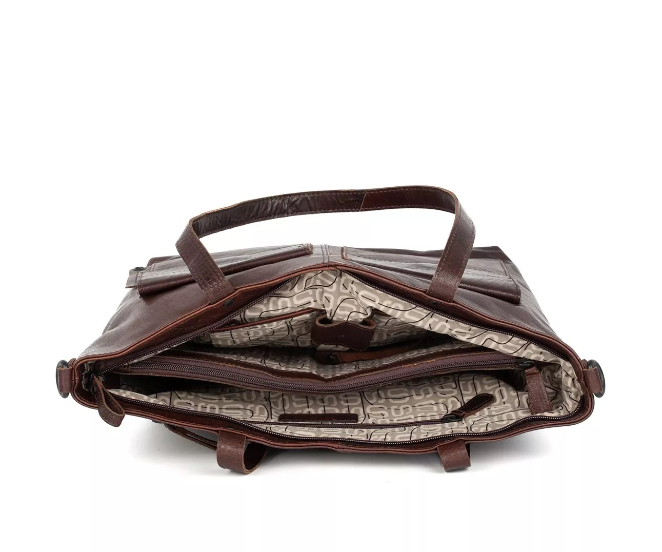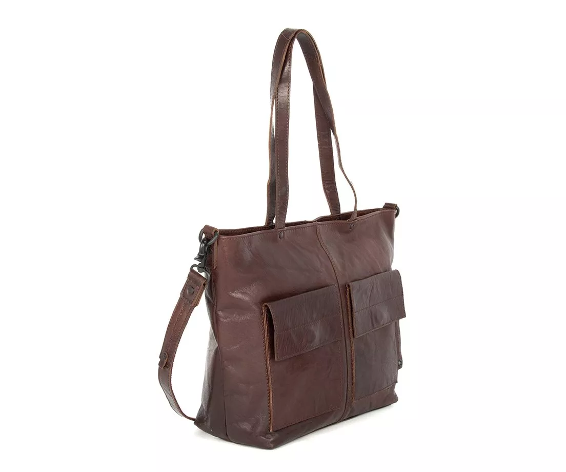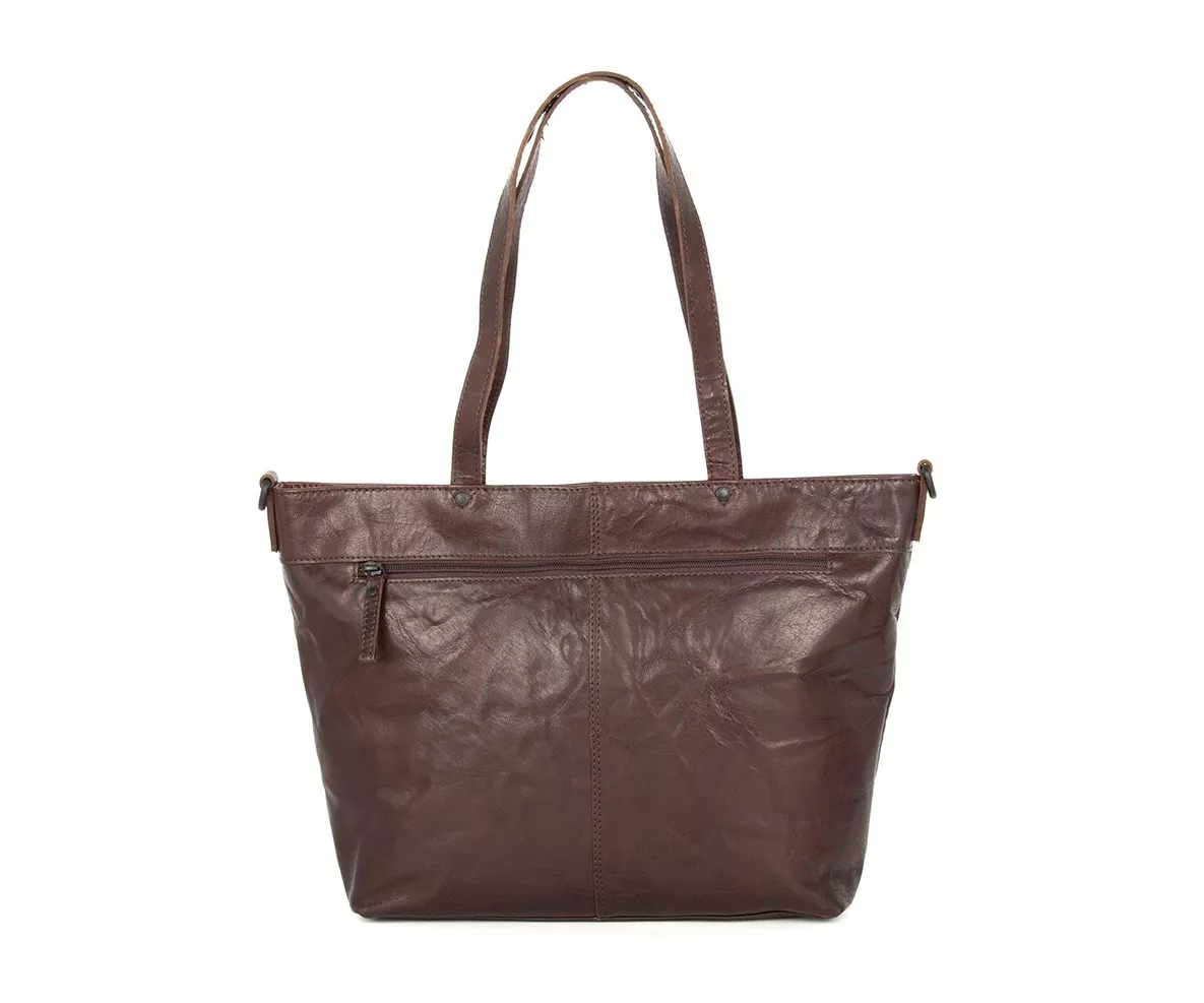 Een goede shopper moet niet alleen praktisch zijn, maar ook prettig dragen. De donkerbruine Yasmin heeft twee brede, stevige leren schouderhengsels die comfortabel op de schouder rusten. Het flexibele Bronco leer vormt zich subtiel naar je lichaam, waardoor de tas prettig blijft hangen, zelfs wanneer hij goed gevuld is. De soepele rits werking en lichtgewicht structuur van het leer maken de tas extra gebruiksvriendelijk.