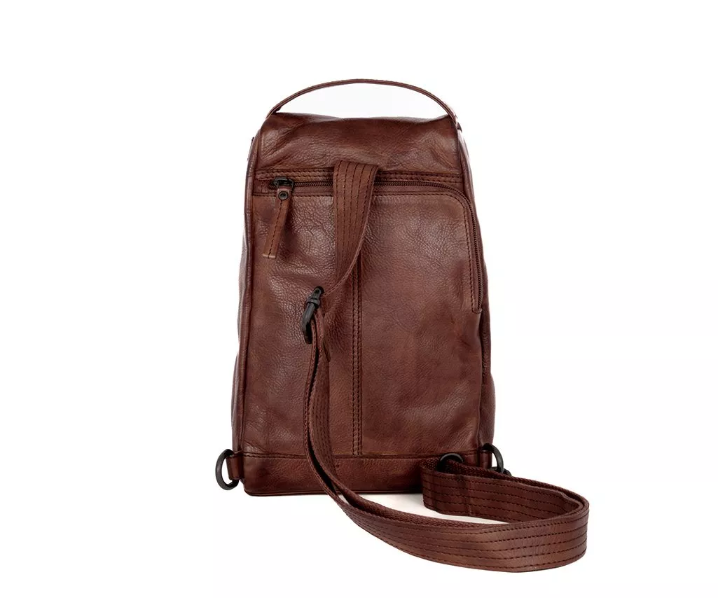 Compact, praktisch en verrassend slim ingedeeld: de donkerbruine leren slingbag Raff is ontworpen voor een actieve levensstijl. Wat deze slingbag onderscheidt, is de keuze om het achtervak te gebruiken als hoofdvak, waardoor je spullen extra veilig en dicht bij het lichaam worden gedragen. Bovenop de tas bevindt zich een handige lus voor je (zonne)bril, ideaal voor onderweg. Aan de voorzijde is een verborgen verticaal ritsvak verwerkt voor items die je snel bij de hand wilt hebben. De Raff combineert functionaliteit met een stoer, eigentijds design.